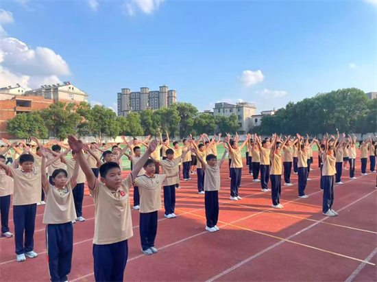 伸展、扩胸、踢腿、侧身…每一个动作,同学们都做得一丝不苟、整齐划一。他们身姿挺拔,眼神专注,展现出良好的节奏感和协调性,精彩的表现赢得了在场师生的阵阵掌声。