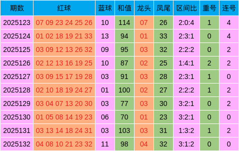 近10期综合特征图(双色球第2025133期三分区解析)