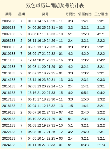 双色球历年同期奖号分析