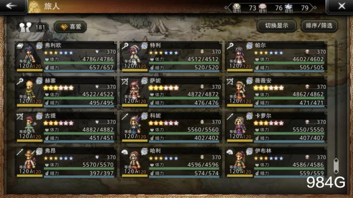 这阵子G哥又开始抽风了,看着一堆80级和100级角色不顺眼,于是开始琢磨给他们升级,跑神域抓了一周猫之后,目前累计十几位五星角色,十几位四星角色,二十位三星角色,他们的级别要么卡在了上限,要么达到了120级,有没有觉得很快?