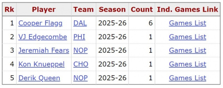 根据数据统计,这是弗拉格本赛季第6次砍下至少30分5篮板5助攻,他的30+5+5场次在本届新秀中一枝独秀,其他新秀加起来一共只有4次。