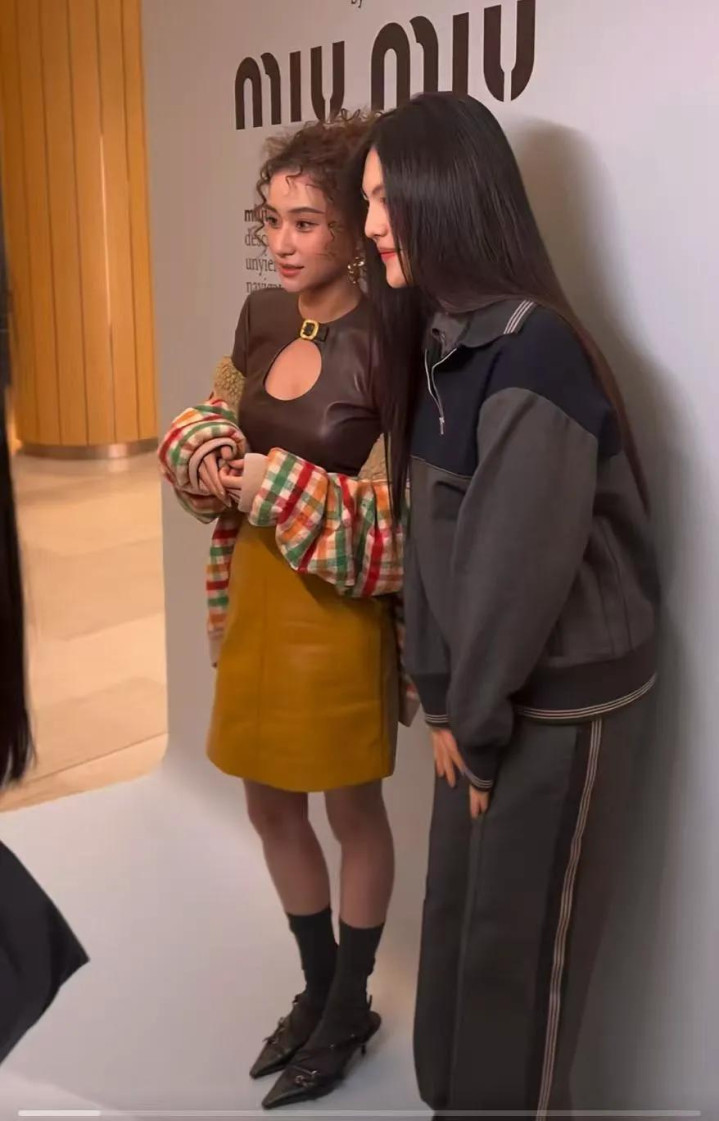 而站她旁边的,是34岁的赌王千金——何超莲。穿着彩虹格纹外套、羊毛卷发、姜黄色短裙,整个人俏皮灵动,活脱脱像个刚放学的大学生。