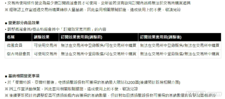 要求玩家必须付费开通会员才能使用交易行,且每个账号可通过野外打怪获取的金币量也有了上限,多个珍贵道具的爆率下调。