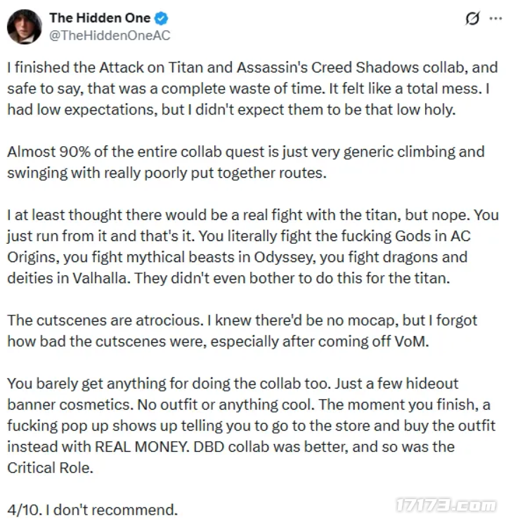 奇怪的联动增加了!《刺客信条:影》联动《进击的巨人》,免费更新故事章节