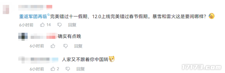但让国服玩家难受的是,继军团再临Remix完美错开国庆假期之后,12.0版本又定档于元宵节当天上线,再度与春节长假错身而过,想要肝的小伙伴也只能提前请假了。